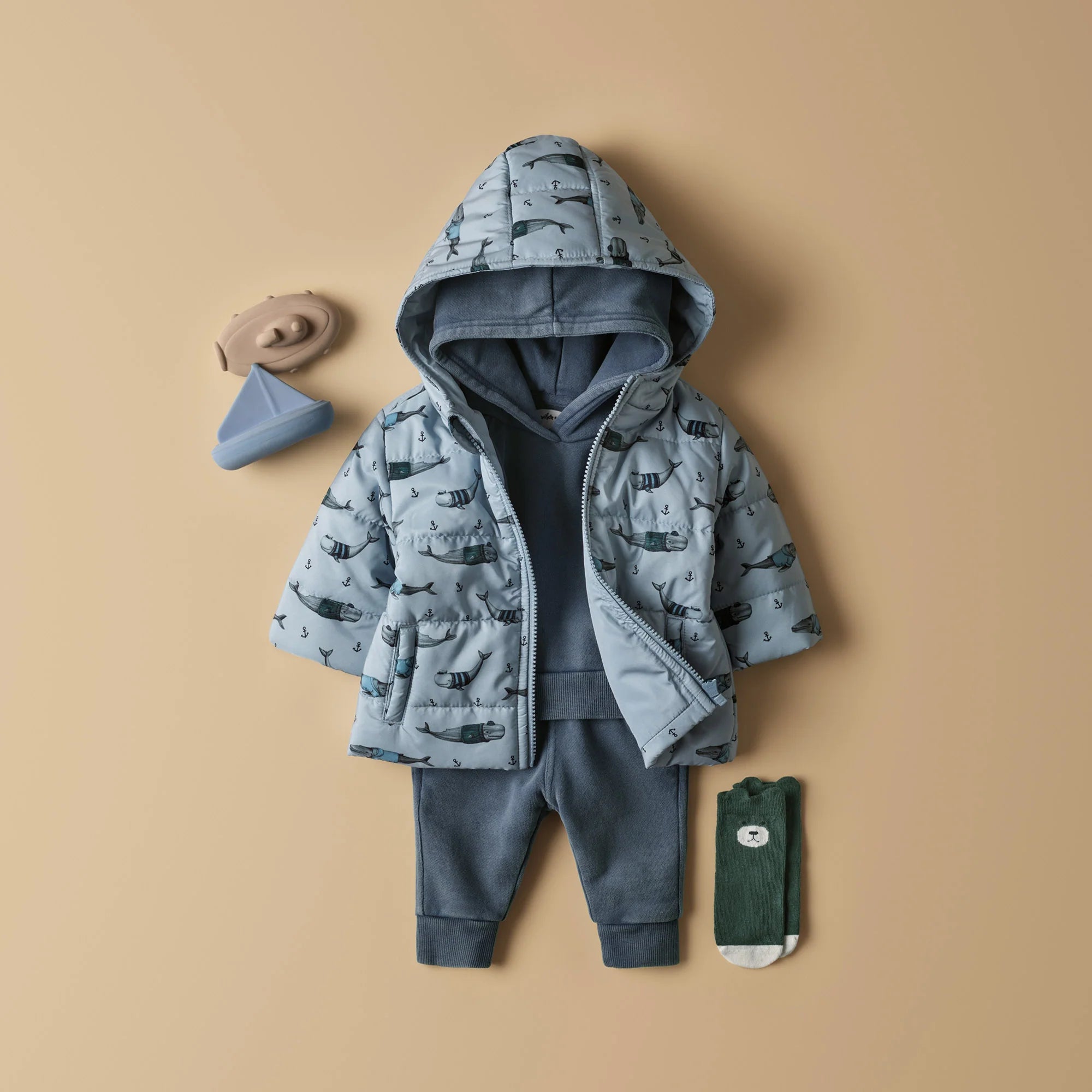 Wilson & Frenchy | Woolly Whales Organic Zipsuit with Feet