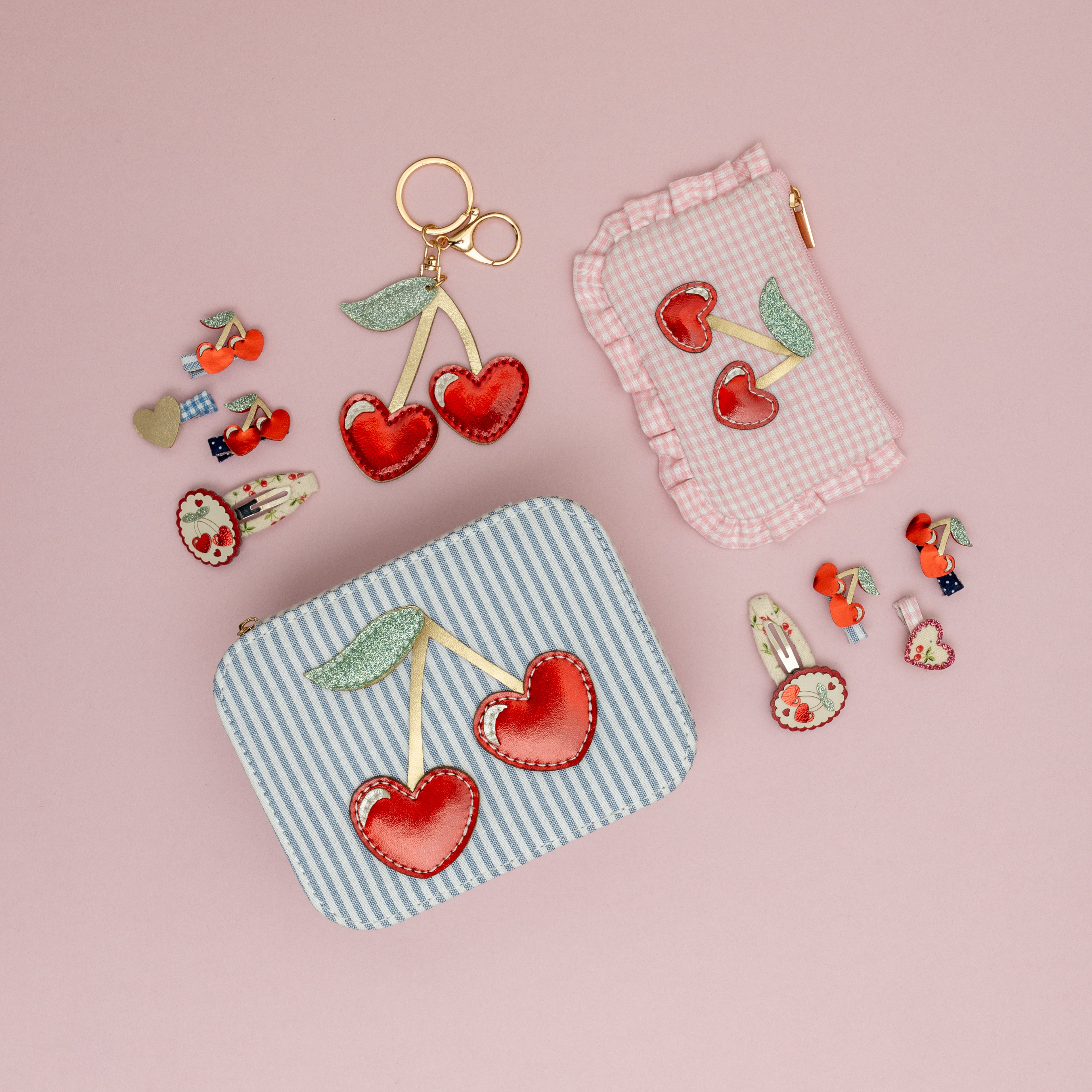 Keep their treasures beautifully organised with Mimi and Lula’s Cherry jewellery box! Crafted from classic blue and white striped fabric and adorned with the prettiest pair of cherries, it’s perfect for jewellery, clips or little keepsakes.