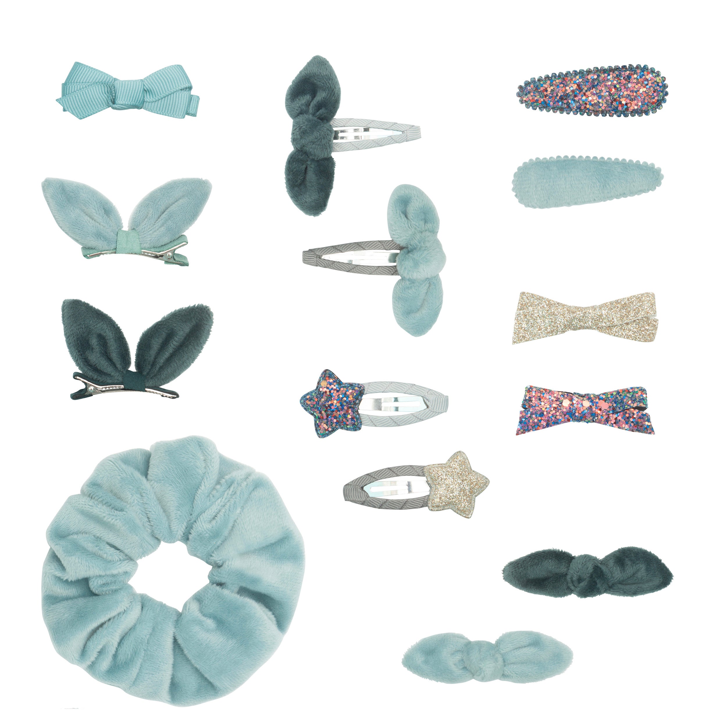 - Stocking contains 14 accessories including one velvet scrunchie plus 13 different hair clips in a range of soft pink, metallic and neutral colours